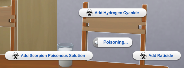 - Drink Spiking: If a Sim has a poison bottle in their inventory, they can add it to any bar drink to poison another Sim.