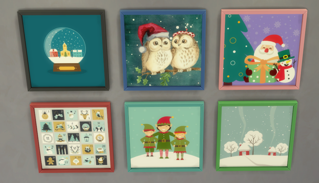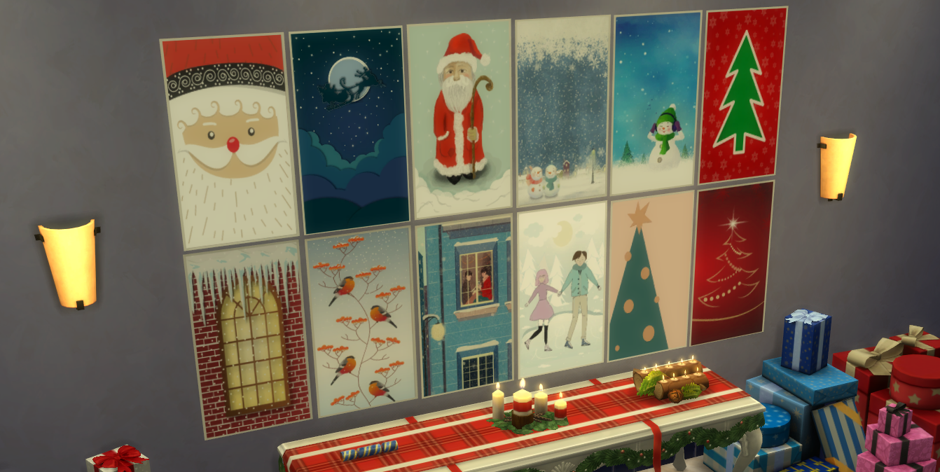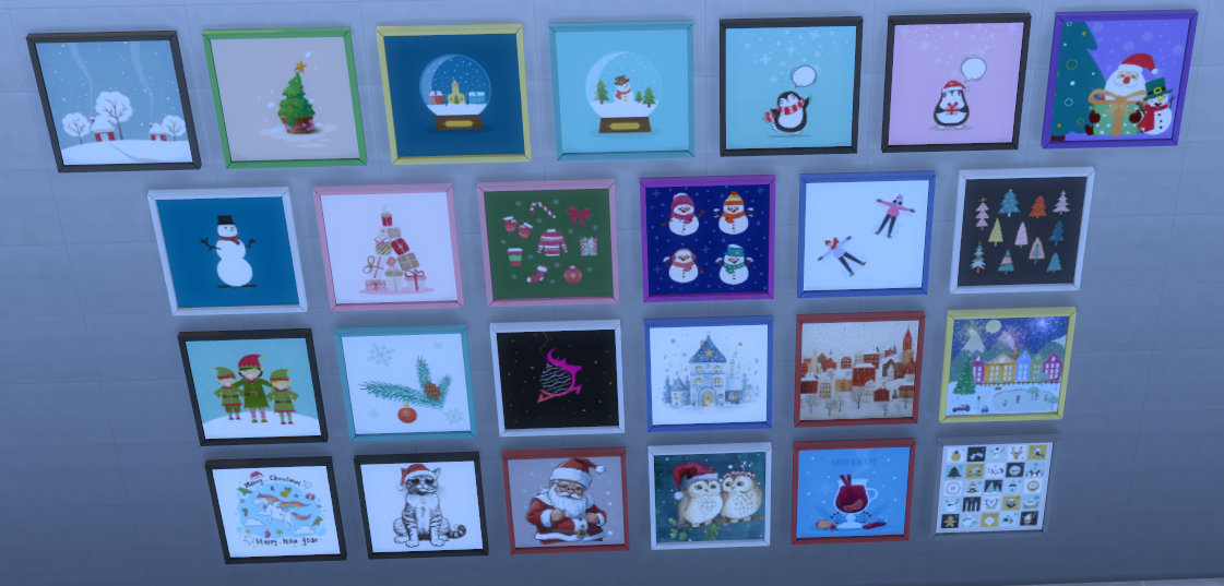 Keep the Christmas spirit alive in your Sims 4 game with this festive collection of Christmas-themed paintings and posters! This mod offers a variety of Christmas decorations to bring joy and a festive atmosphere to your Sims’ homes. All items are purely decorative and can be found in Build Mode.